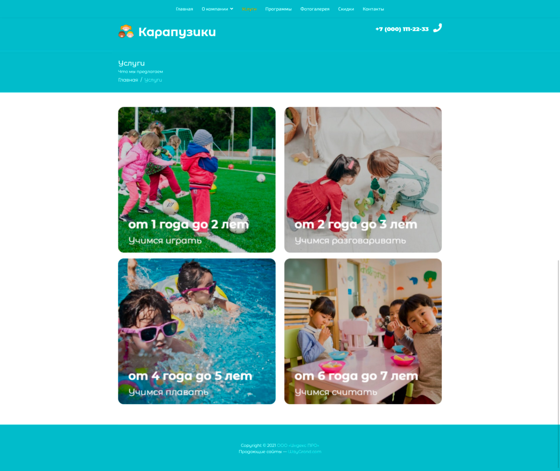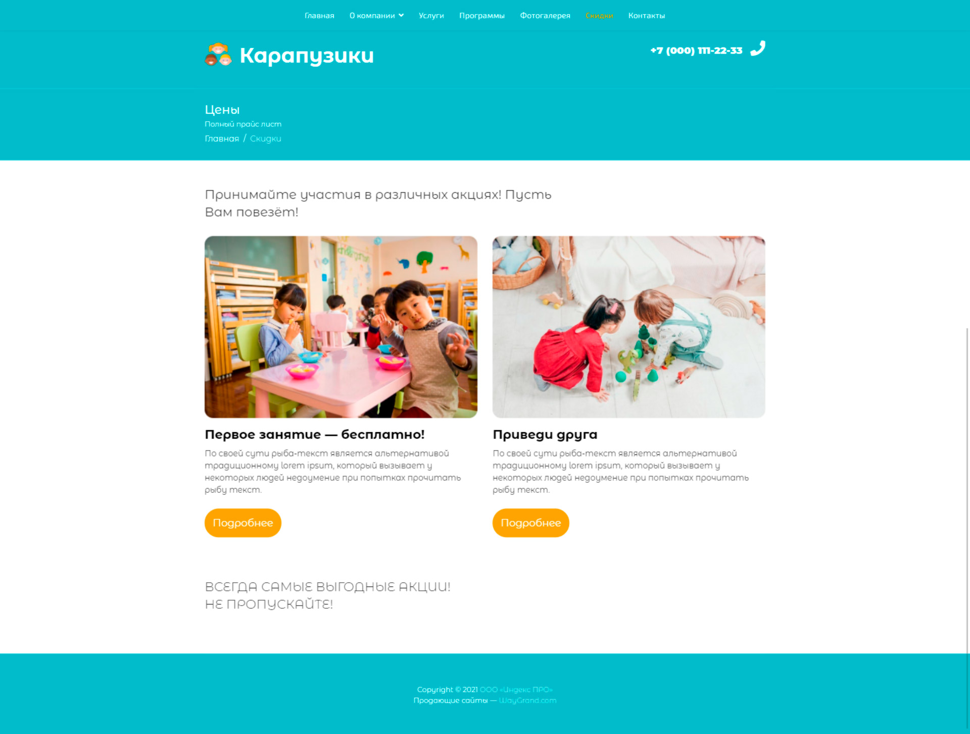 Закажите готовый продающий сайт визитка #0419301 в Элисте за 5-7 дня «под ключ»: свёрстан, отрисован и готов к рекламе. Тематика шаблона «Частный детский центр».