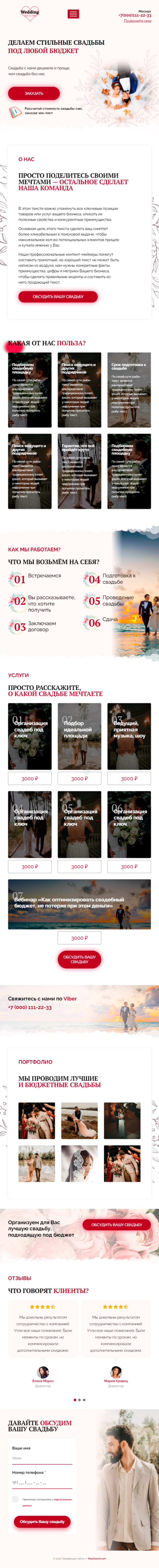 Закажите готовый продающий сайт лендинг #0440206 в Элисте за 1-3 дня «под ключ»: свёрстан, отрисован и готов к рекламе. Тематика шаблона «Организация свадеб».