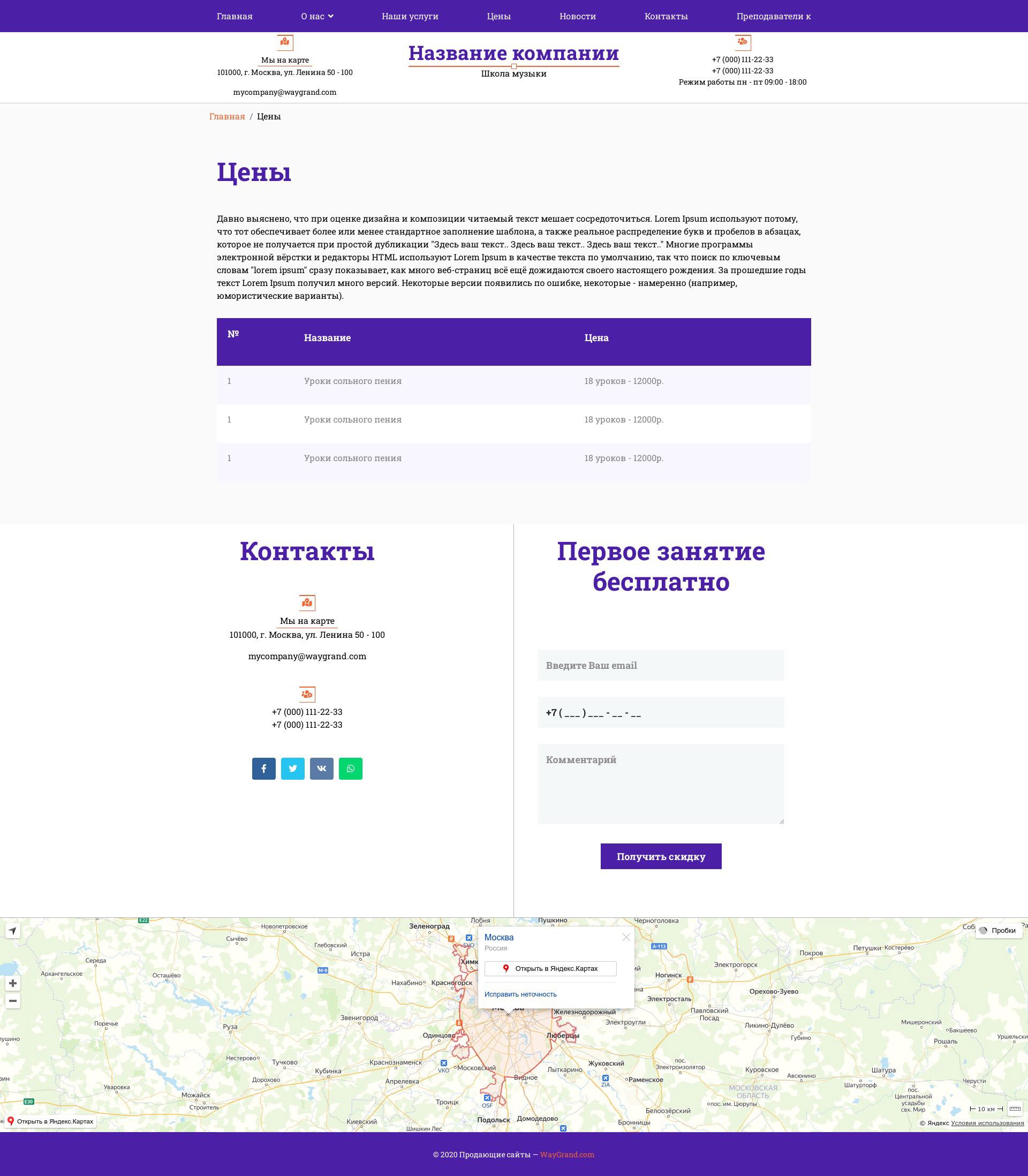 Закажите готовый продающий сайт визитка #1431301 в Элисте за 5-7 дня «под ключ»: свёрстан, отрисован и готов к рекламе. Тематика шаблона «Школа музыки».