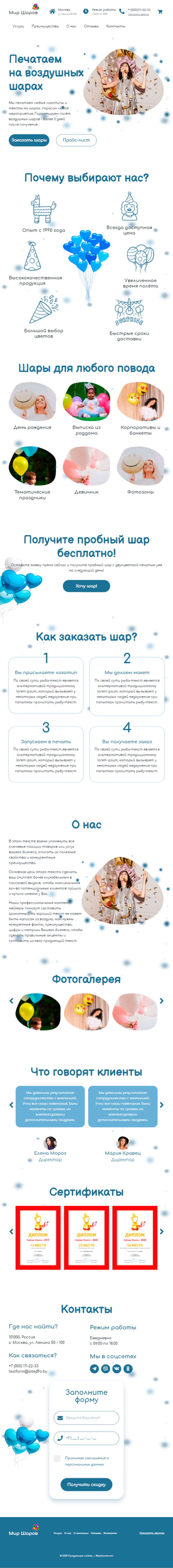 Закажите готовый продающий сайт лендинг #1826202 в Элисте за 1-3 дня «под ключ»: свёрстан, отрисован и готов к рекламе. Тематика шаблона «Печать на воздушных шарах».