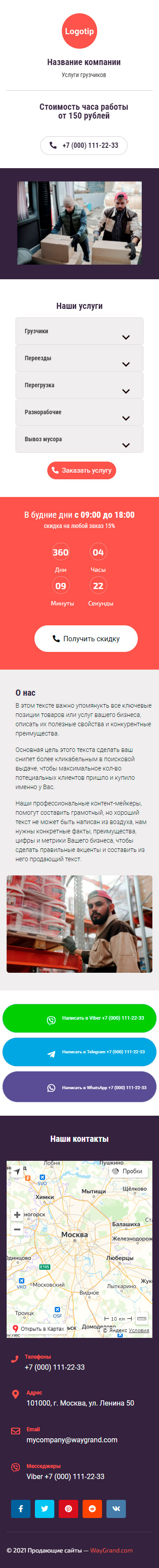 Закажите готовый продающий сайт визитка #2562101 в Элисте за 5-7 дня «под ключ»: свёрстан, отрисован и готов к рекламе. Тематика шаблона «Услуги грузчиков».