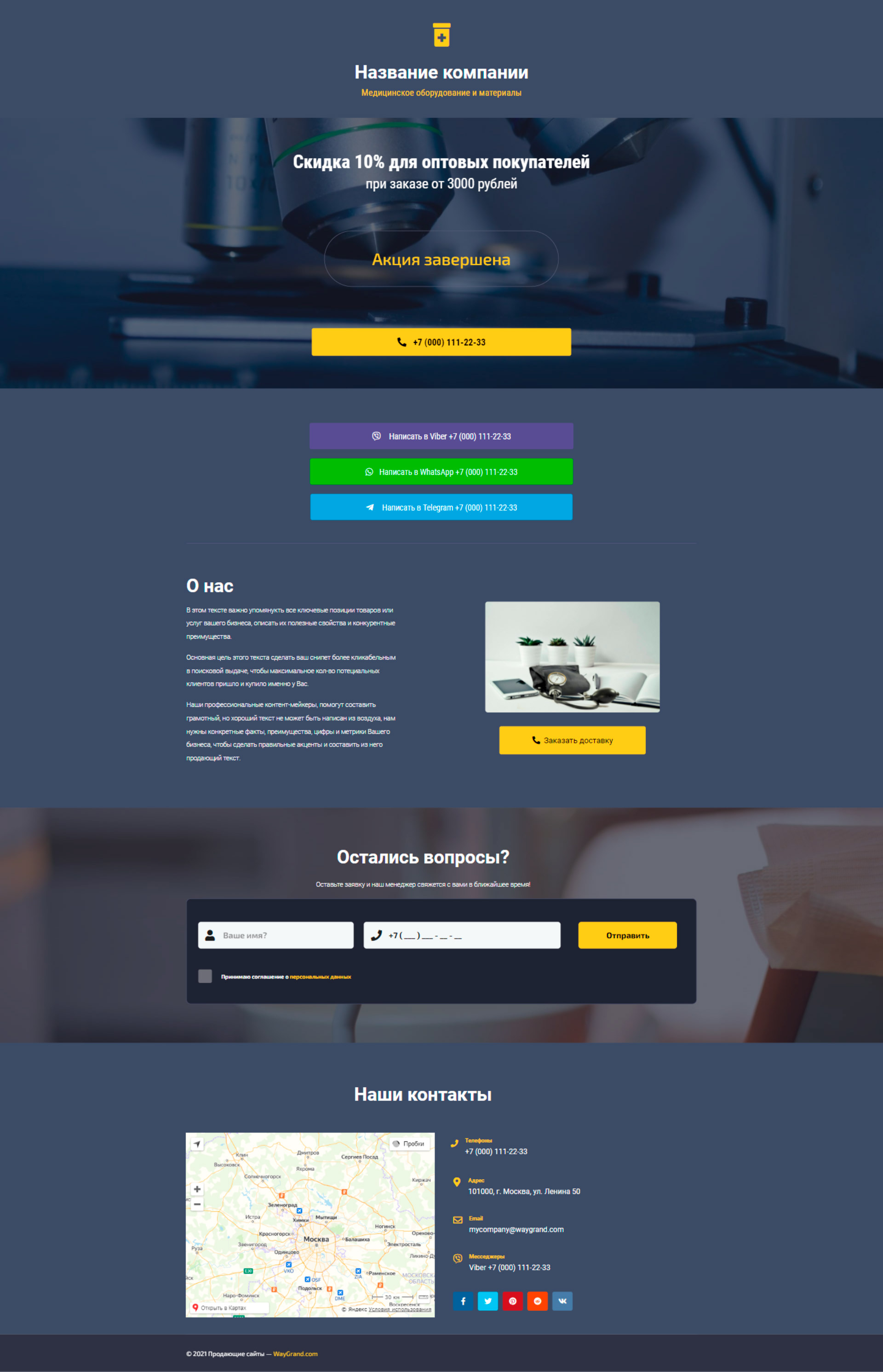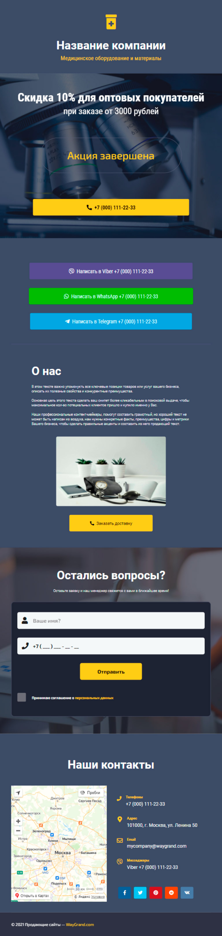 Закажите готовый продающий сайт визитка #1027101 в Элисте за 5-7 дня «под ключ»: свёрстан, отрисован и готов к рекламе. Тематика шаблона «Медицинское оборудование и материалы».