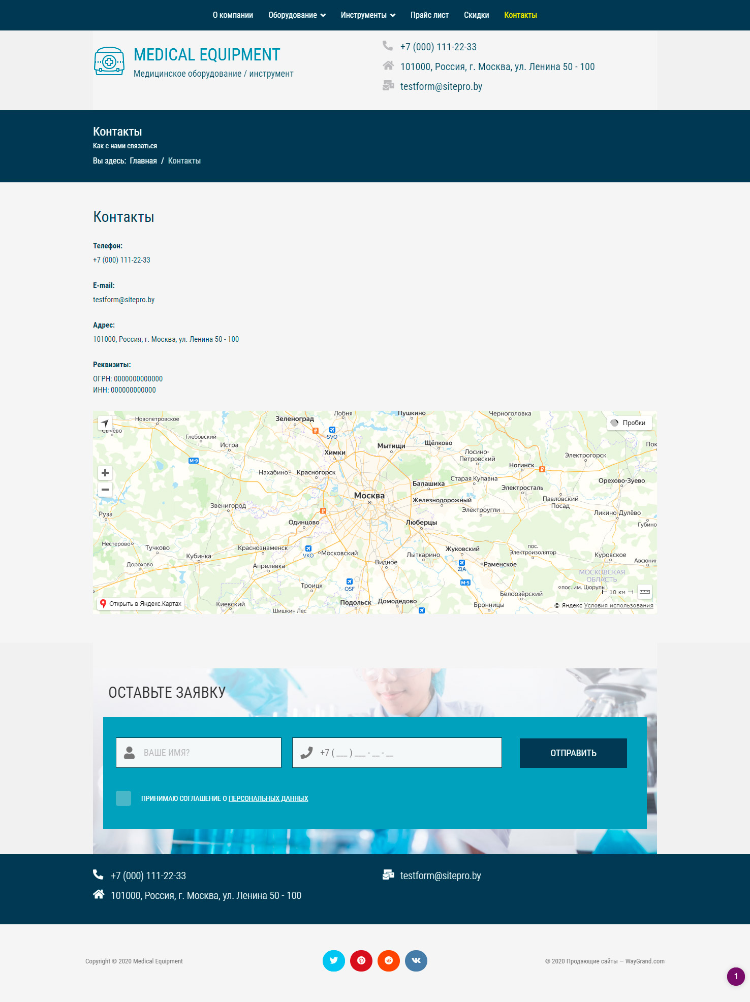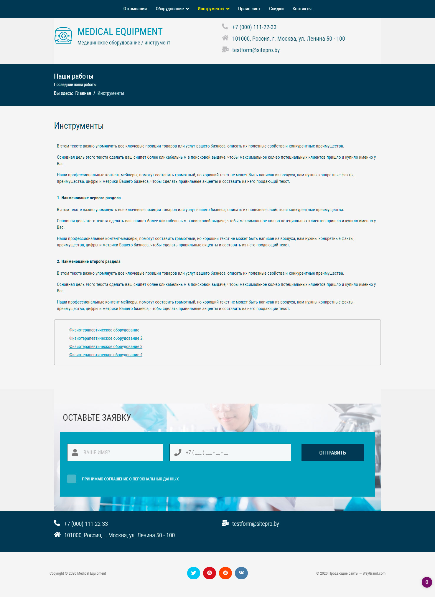 Закажите готовый продающий сайт визитка #1029301 в Элисте за 5-7 дня «под ключ»: свёрстан, отрисован и готов к рекламе. Тематика шаблона «Медицинское оборудование / инструмент».