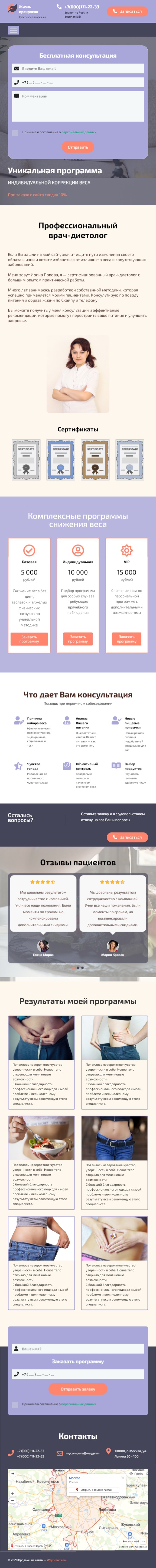 Закажите готовый продающий сайт лендинг #1094201 в Элисте за 1-3 дня «под ключ»: свёрстан, отрисован и готов к рекламе. Тематика шаблона «Врач-диетолог (похудение)».