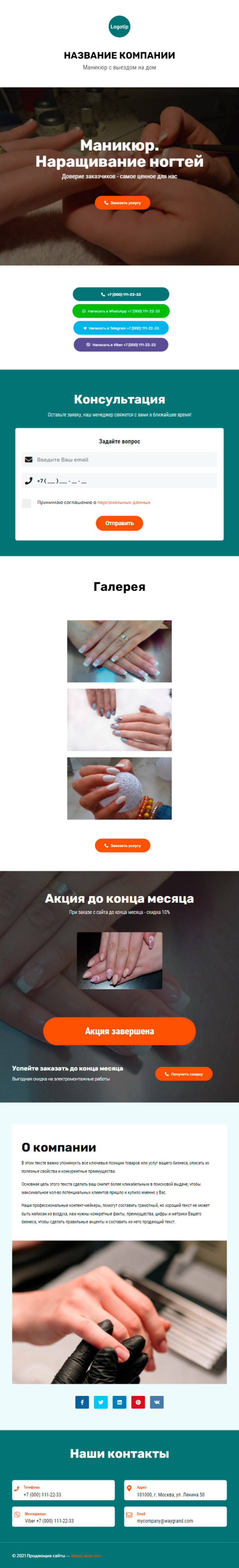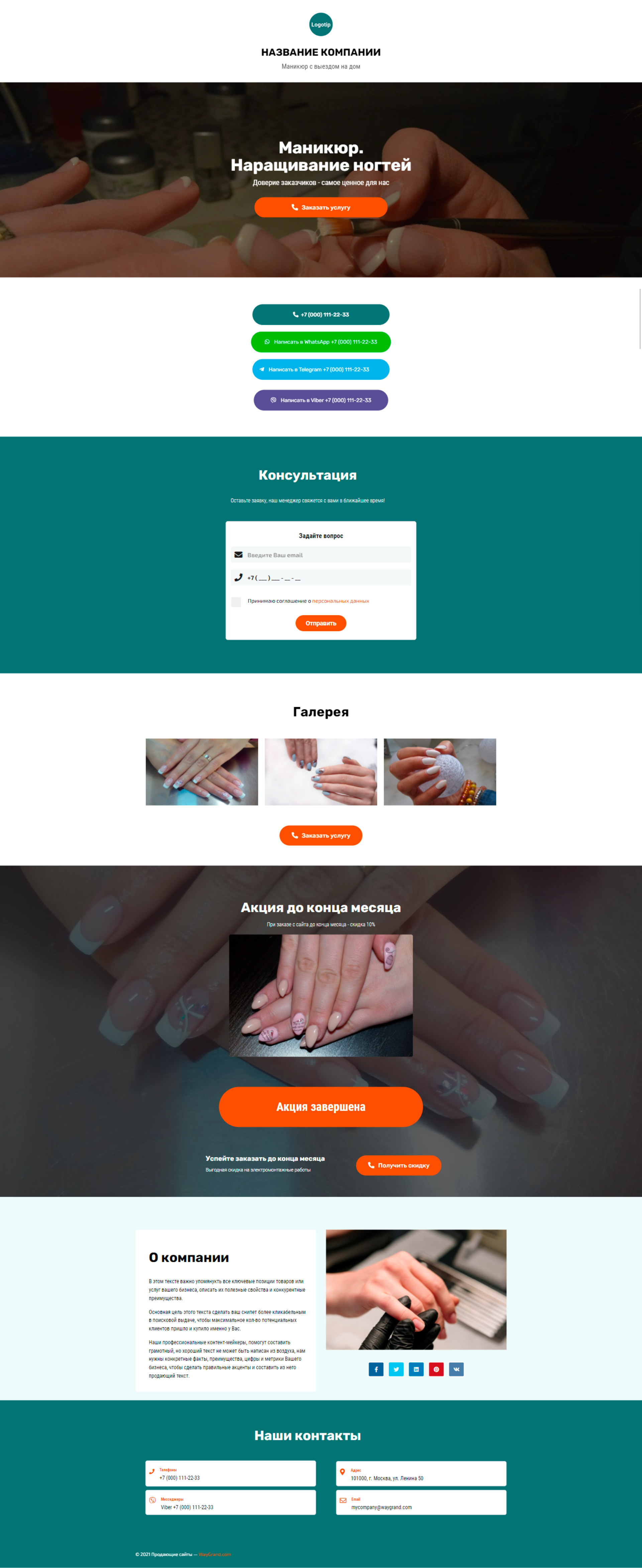 Закажите готовый продающий сайт визитка #1107101 в Элисте за 5-7 дня «под ключ»: свёрстан, отрисован и готов к рекламе. Тематика шаблона «Маникюр. Наращивание ногтей».