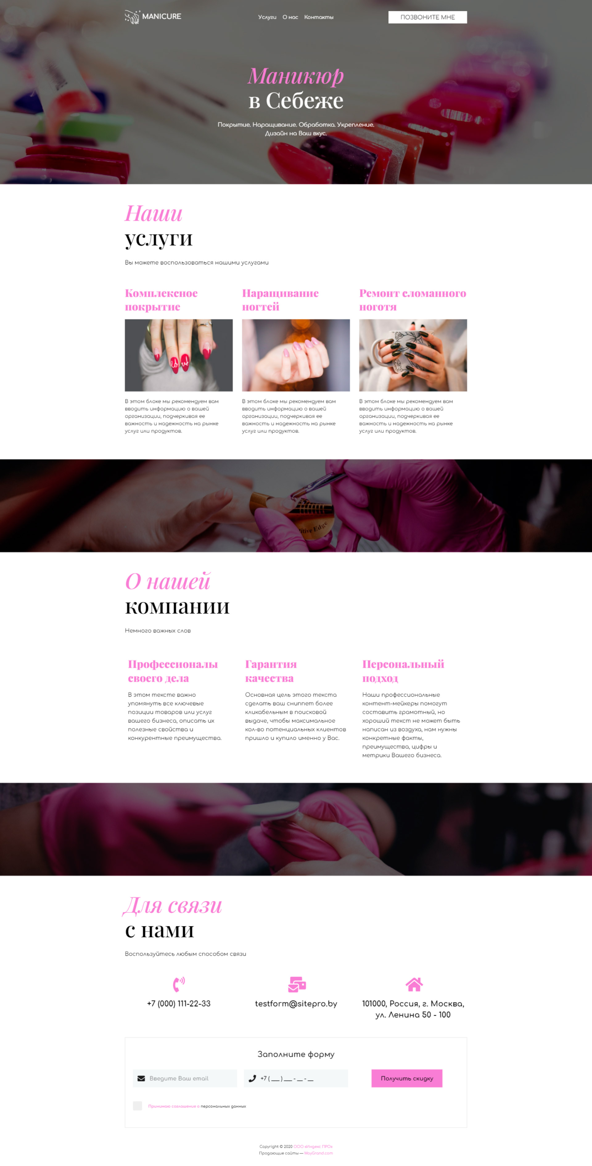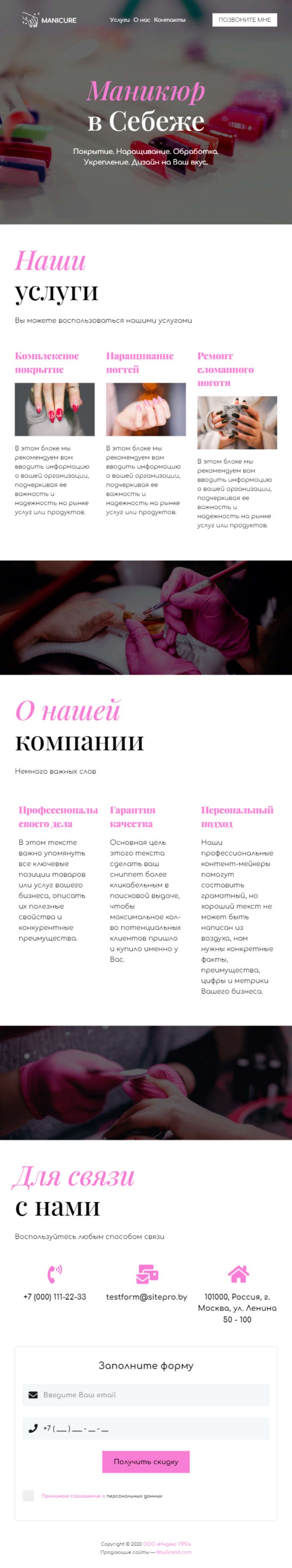 Закажите готовый продающий сайт визитка #1107102 в Элисте за 5-7 дня «под ключ»: свёрстан, отрисован и готов к рекламе. Тематика шаблона «Маникюр в Себеже».