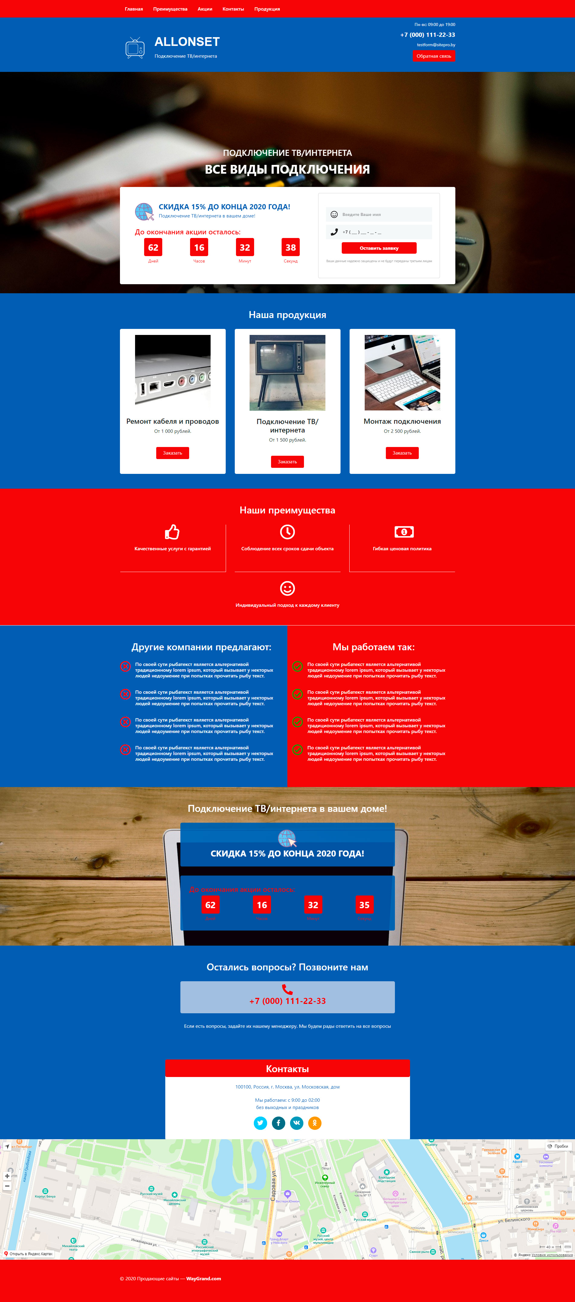 Закажите готовый продающий сайт лендинг #0718201 в Элисте за 1-3 дня «под ключ»: свёрстан, отрисован и готов к рекламе. Тематика шаблона «Подключение ТВ/интернета».