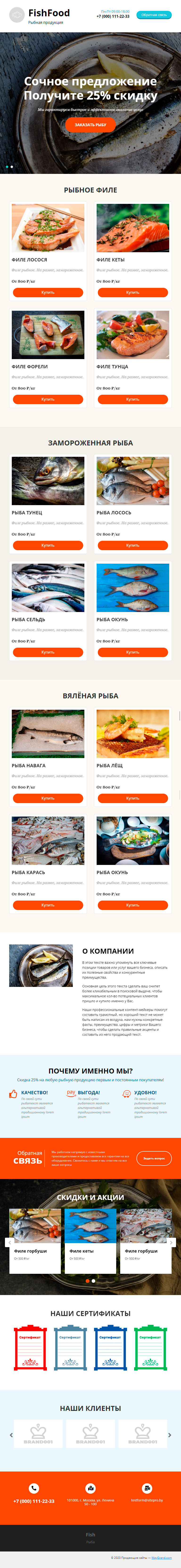 Закажите готовый продающий сайт лендинг #1731201 в Элисте за 1-3 дня «под ключ»: свёрстан, отрисован и готов к рекламе. Тематика шаблона «Рыбная продукция».