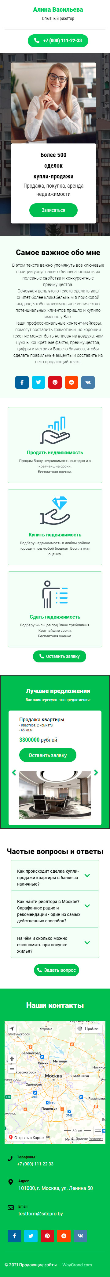 Закажите готовый продающий сайт визитка #2102101 в Элисте за 5-7 дня «под ключ»: свёрстан, отрисован и готов к рекламе. Тематика шаблона «Опытный риэлтор».
