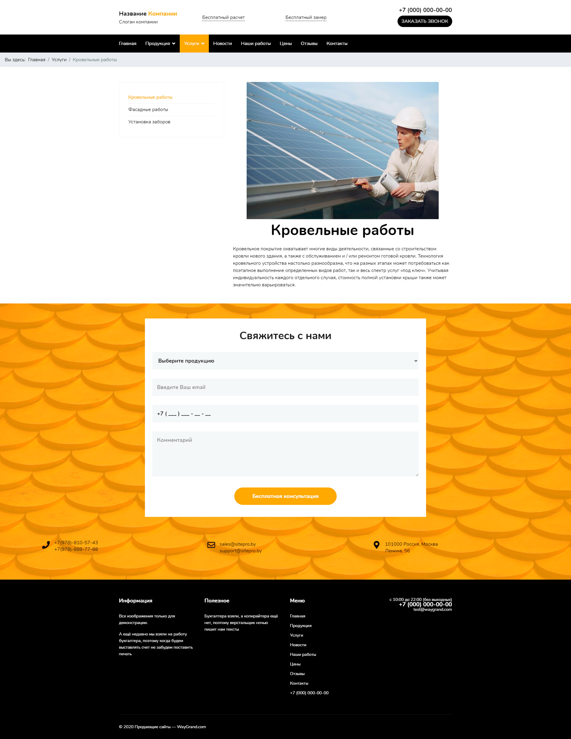 Закажите готовый продающий сайт визитка #2132301 в Элисте за 5-7 дня «под ключ»: свёрстан, отрисован и готов к рекламе. Тематика шаблона «Заборы, кровля, фасады».