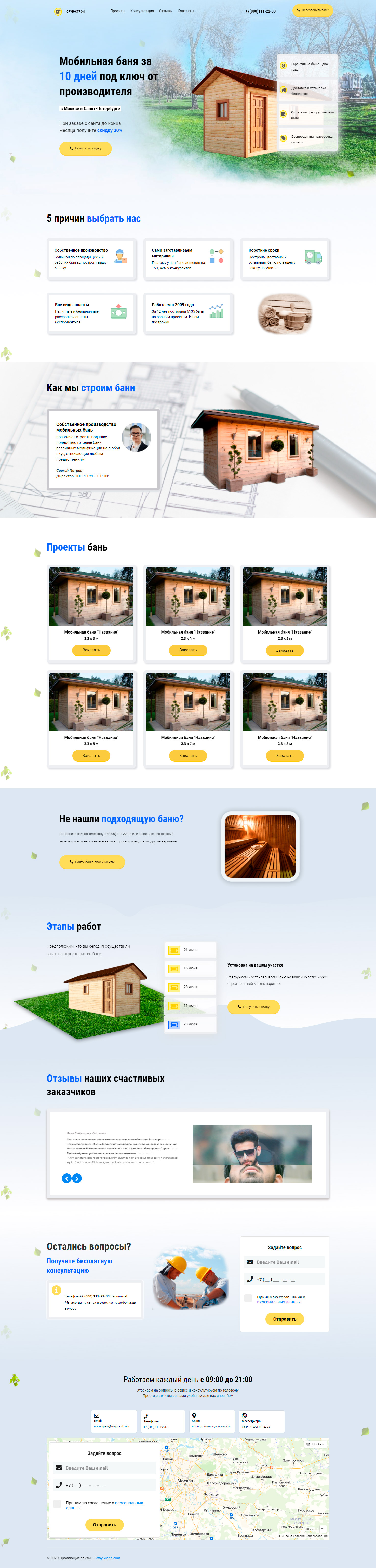 Закажите готовый продающий сайт лендинг #2172203 в Элисте за 1-3 дня «под ключ»: свёрстан, отрисован и готов к рекламе. Тематика шаблона «Мобильная баня».