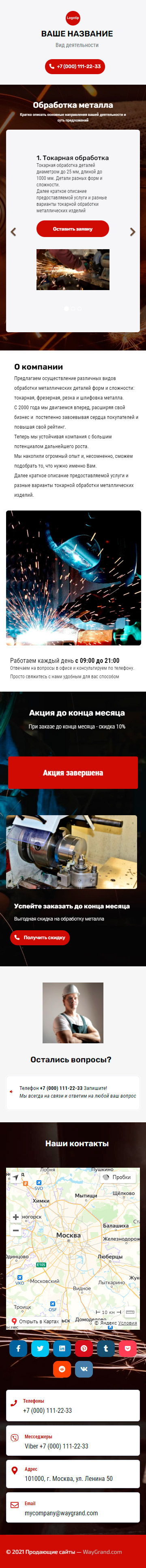 Закажите готовый продающий сайт визитка #1209101 в Элисте за 5-7 дня «под ключ»: свёрстан, отрисован и готов к рекламе. Тематика шаблона «Обработка металла».