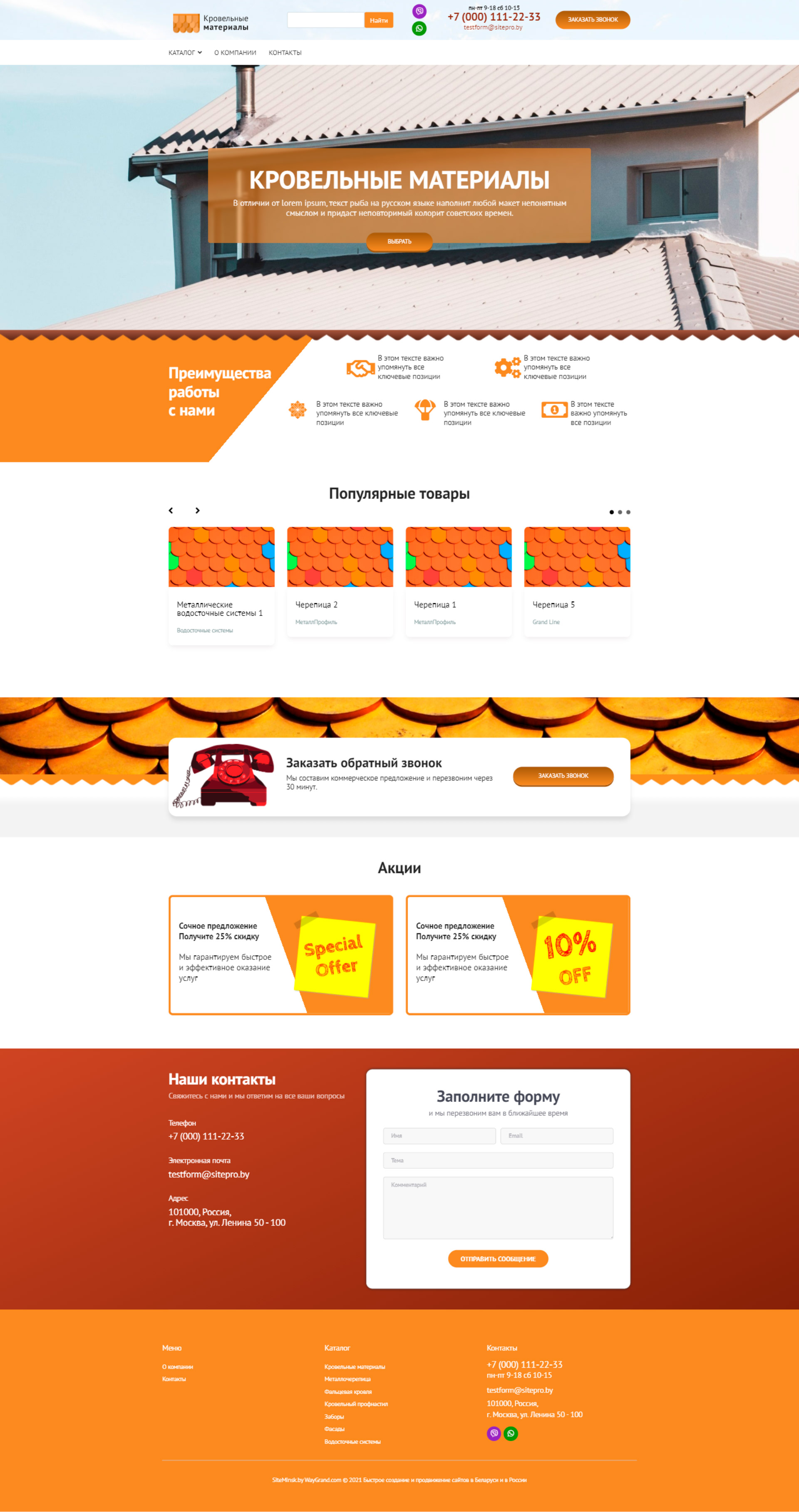 - Промоблок "Кровельные материалы" с кнопкой призыва к действию "Выбрать"