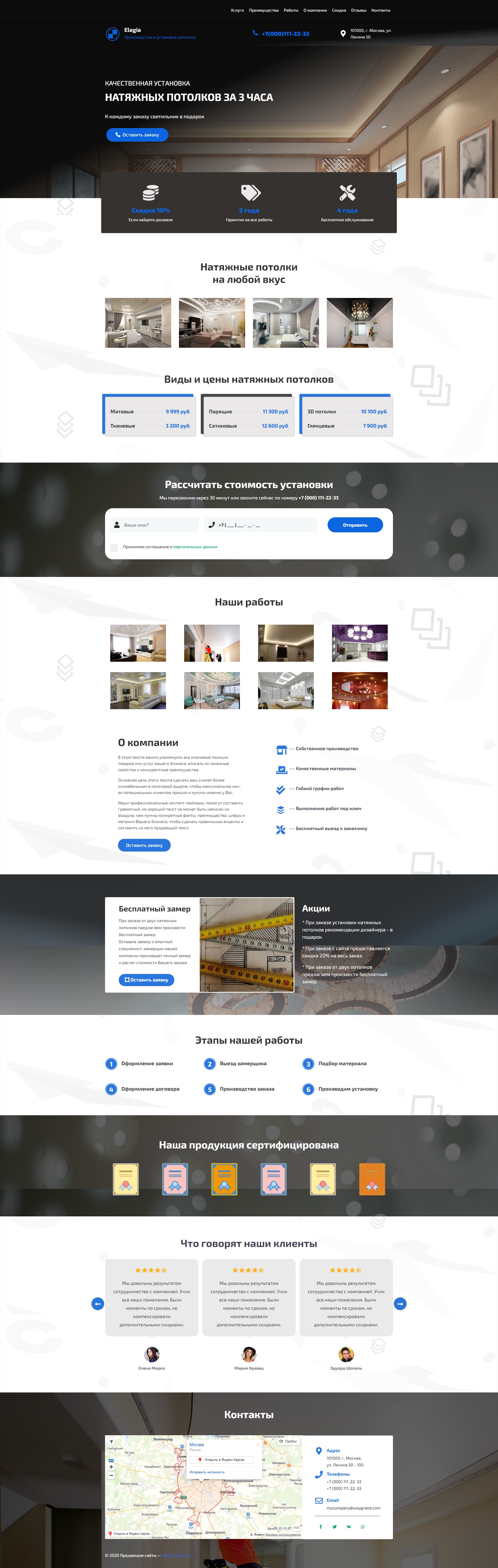 Закажите готовый продающий сайт лендинг #2029202 в Элисте за 1-3 дня «под ключ»: свёрстан, отрисован и готов к рекламе. Тематика шаблона «Натяжные потолки».