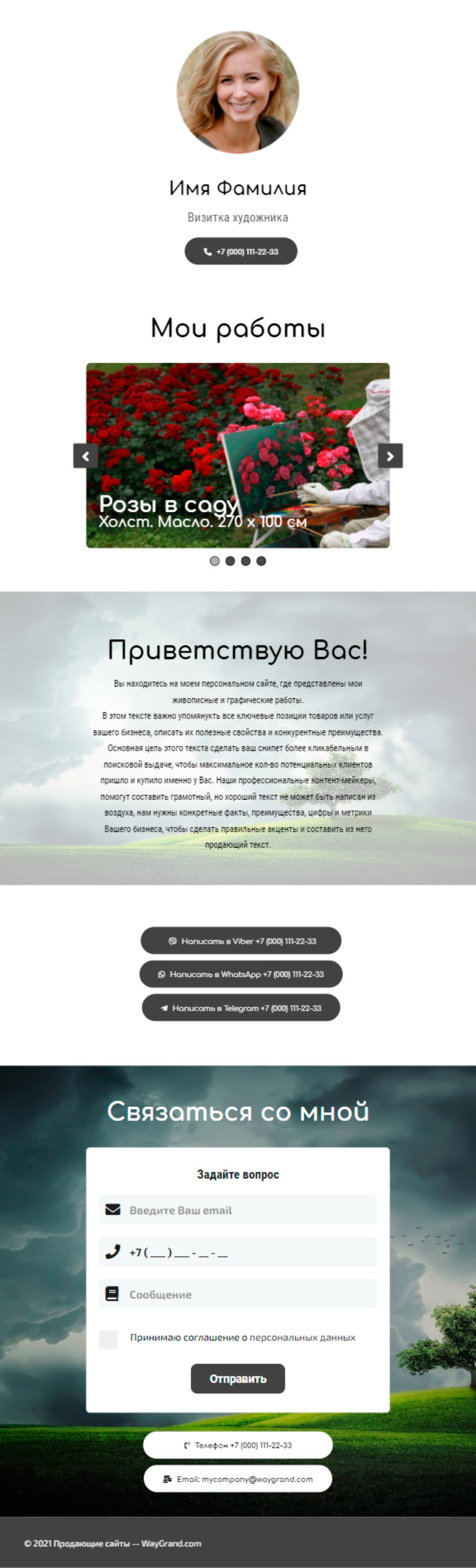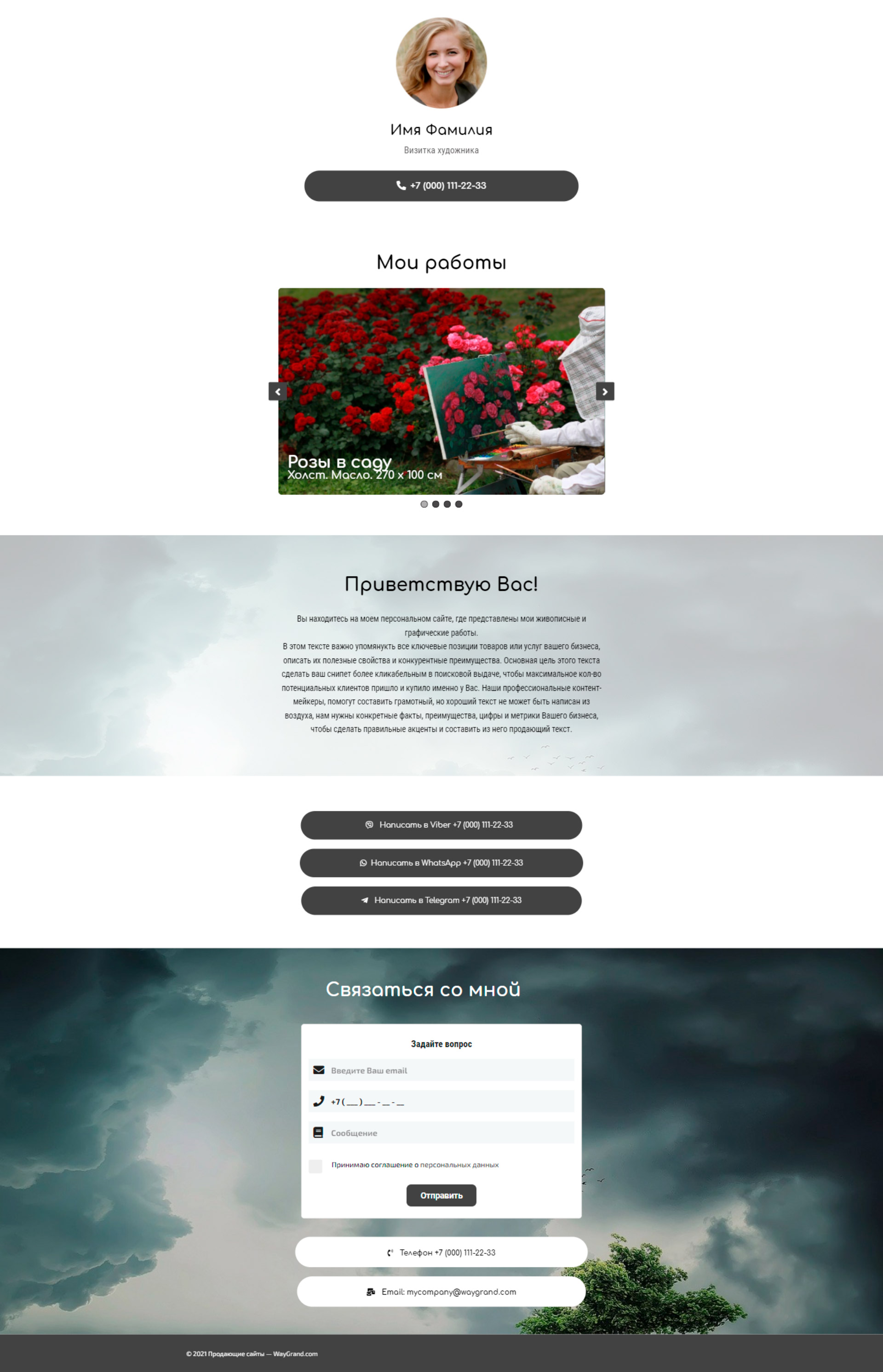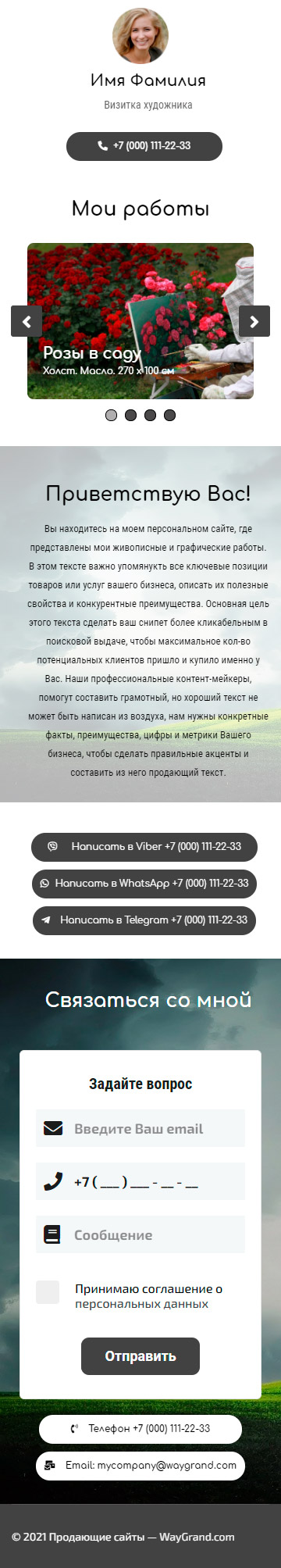 Закажите готовый продающий сайт визитка #0826101 в Элисте за 5-7 дня «под ключ»: свёрстан, отрисован и готов к рекламе. Тематика шаблона «Визитка художника».
