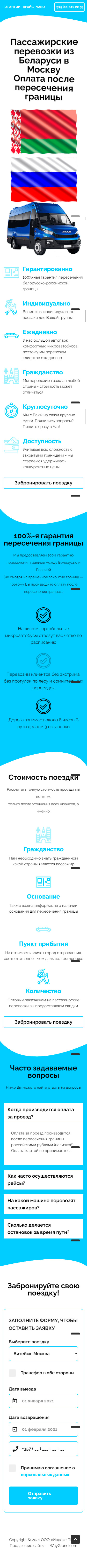 Закажите готовый продающий сайт лендинг #2528204 в Элисте за 1-3 дня «под ключ»: свёрстан, отрисован и готов к рекламе. Тематика шаблона «Пассажирские перевозки из Беларуси в Москву».