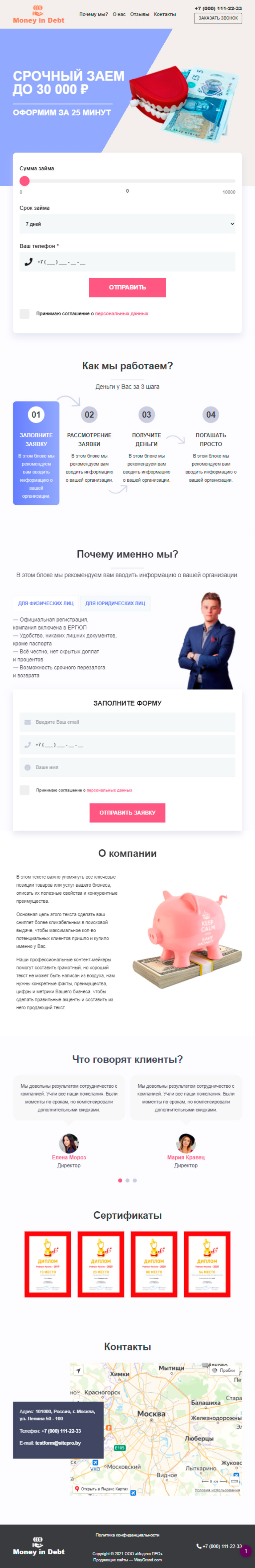 Закажите готовый продающий сайт лендинг #2825202 в Элисте за 1-3 дня «под ключ»: свёрстан, отрисован и готов к рекламе. Тематика шаблона «Деньги в долг».