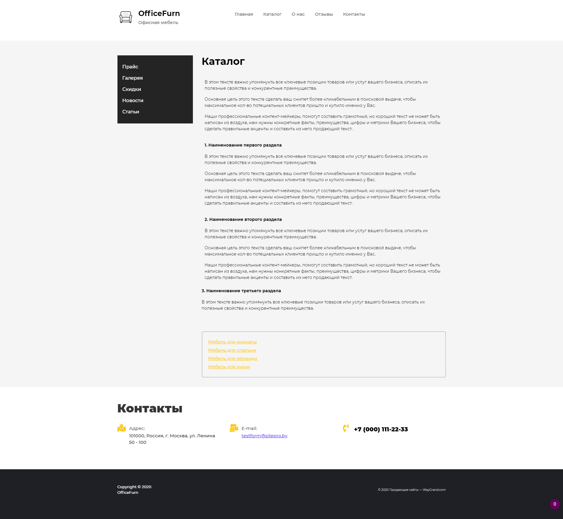 Закажите готовый продающий сайт визитка #0921301 в Элисте за 5-7 дня «под ключ»: свёрстан, отрисован и готов к рекламе. Тематика шаблона «Офисная мебель».