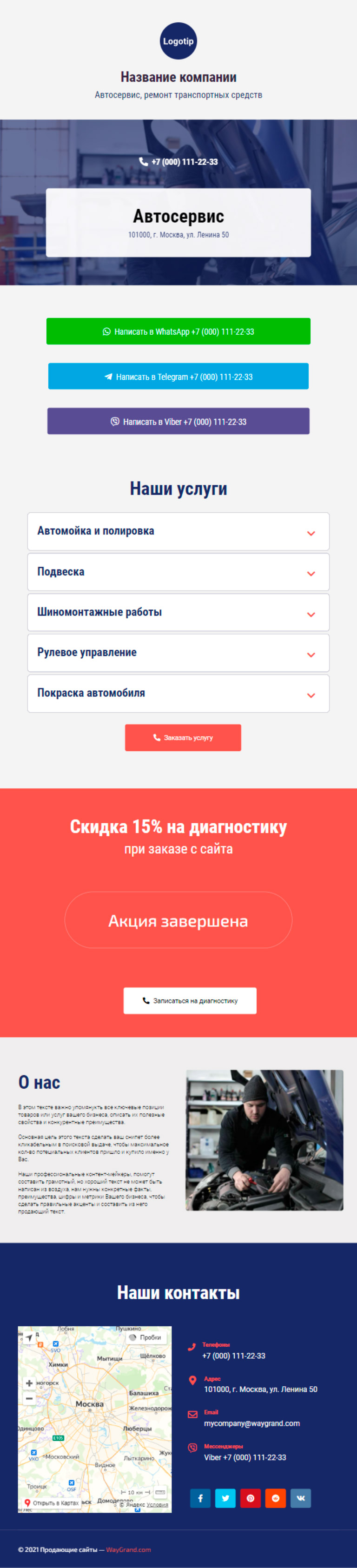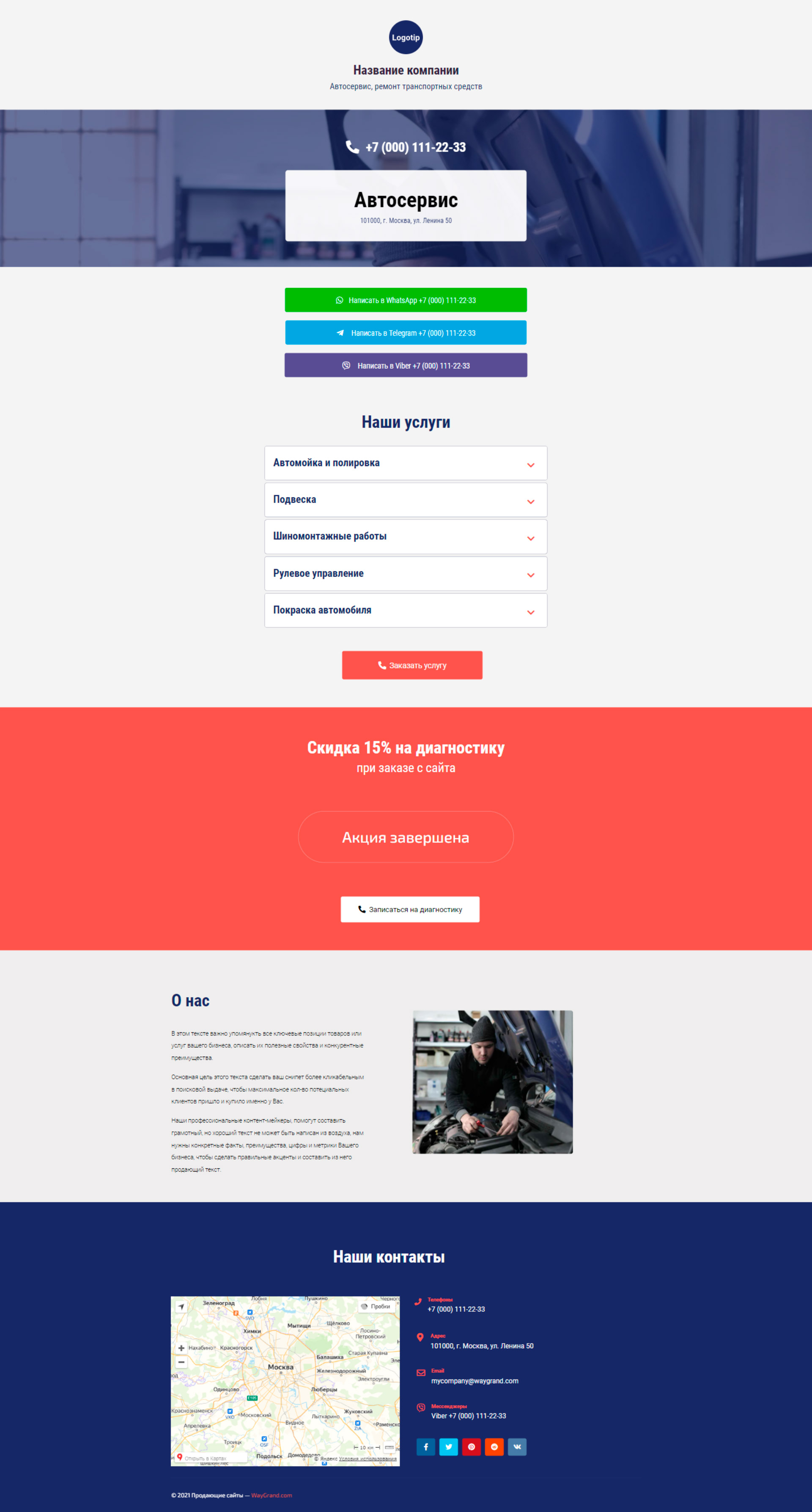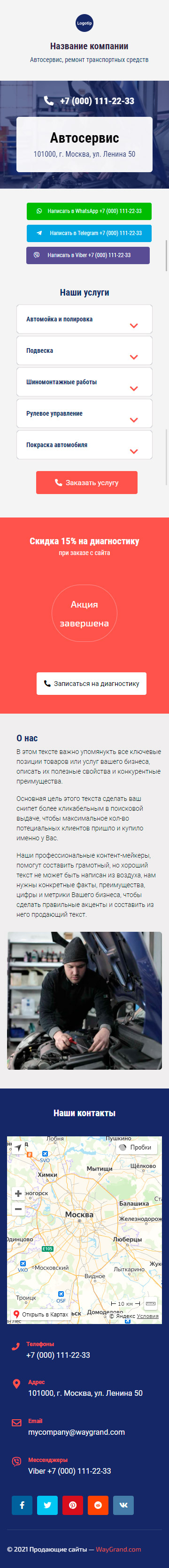 Закажите готовый продающий сайт визитка #0210101 в Элисте за 5-7 дня «под ключ»: свёрстан, отрисован и готов к рекламе. Тематика шаблона «Автосервис, ремонт транспортных средств».