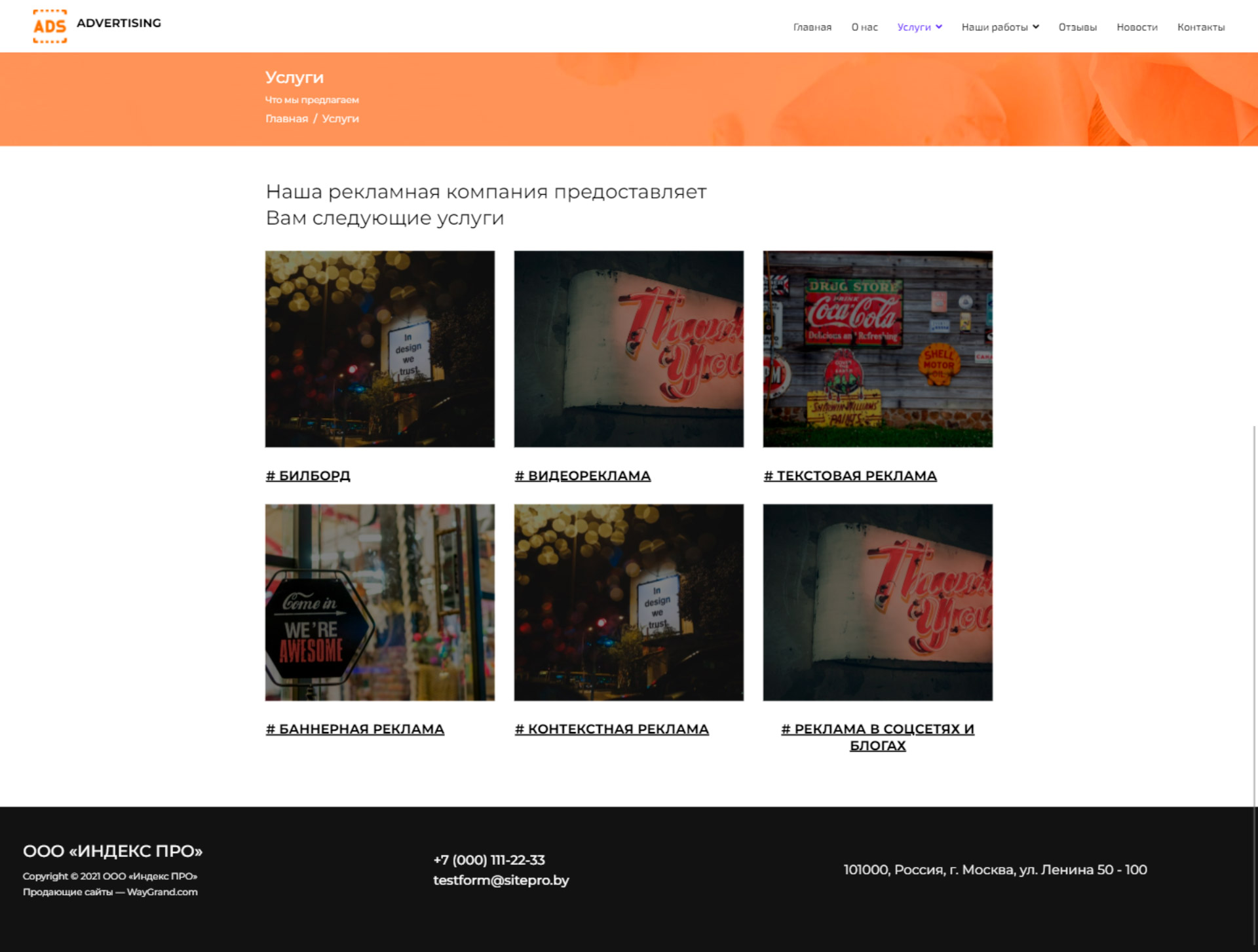- Страница "Услуги"