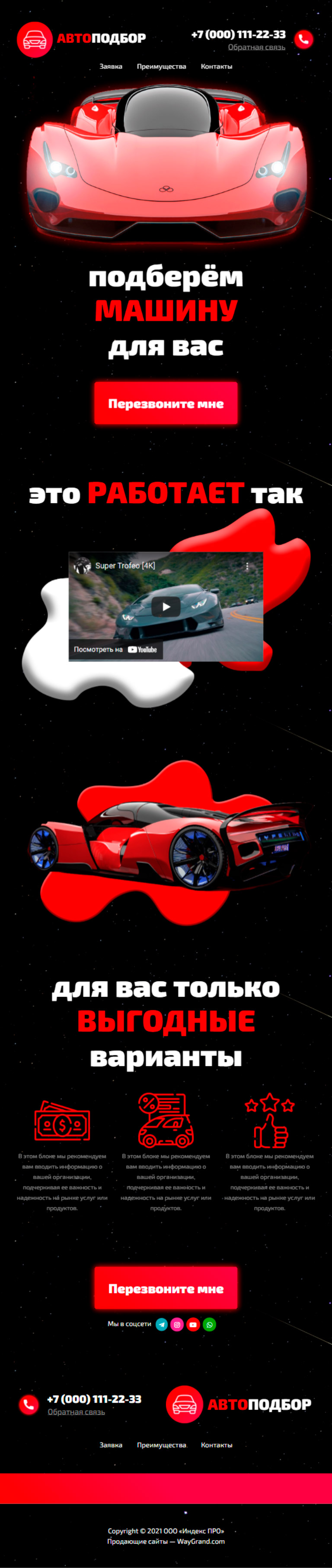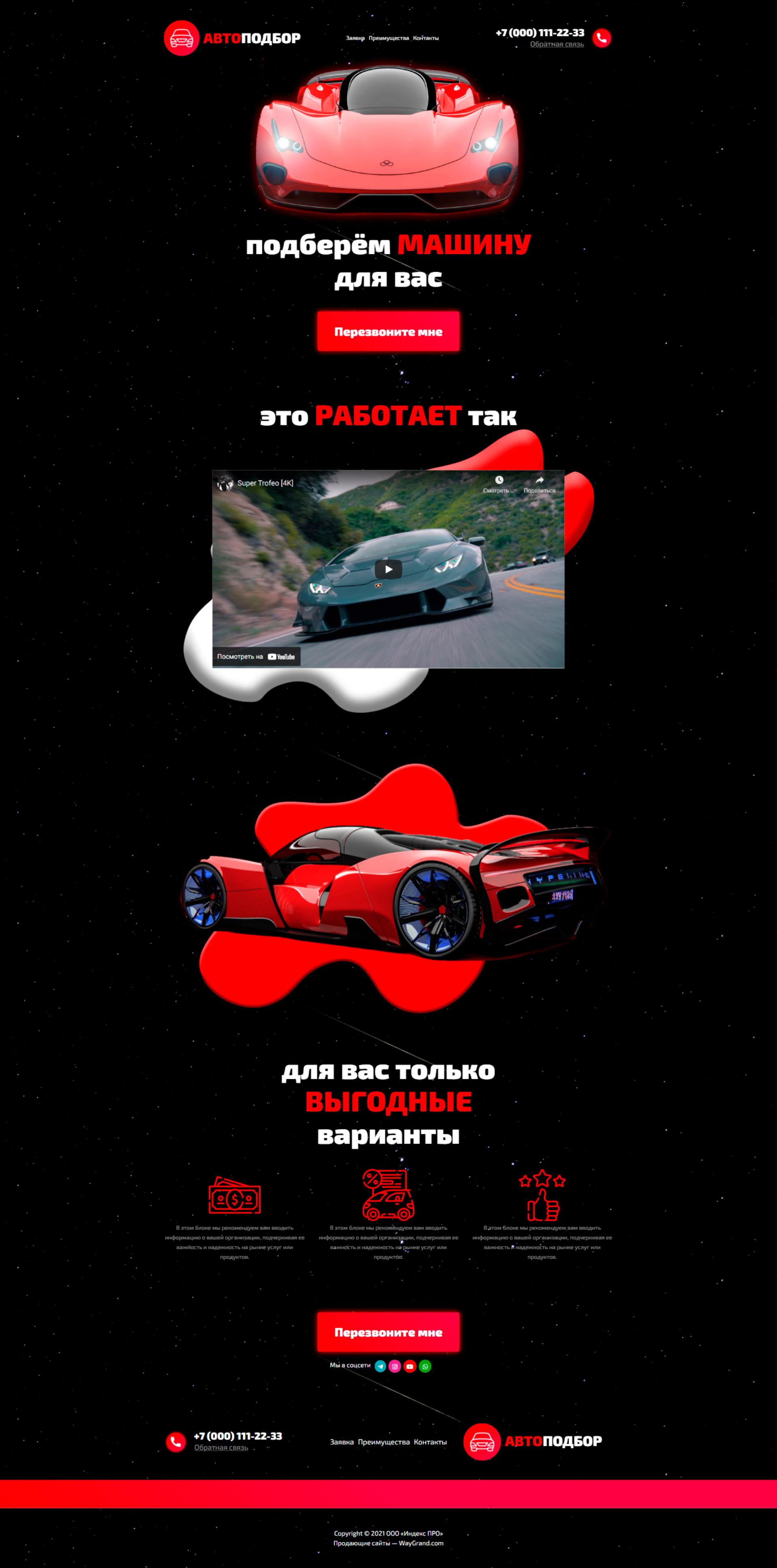 Закажите готовый продающий сайт лендинг #3275201 в Элисте за 1-3 дня «под ключ»: свёрстан, отрисован и готов к рекламе. Тематика шаблона «Автоподбор».