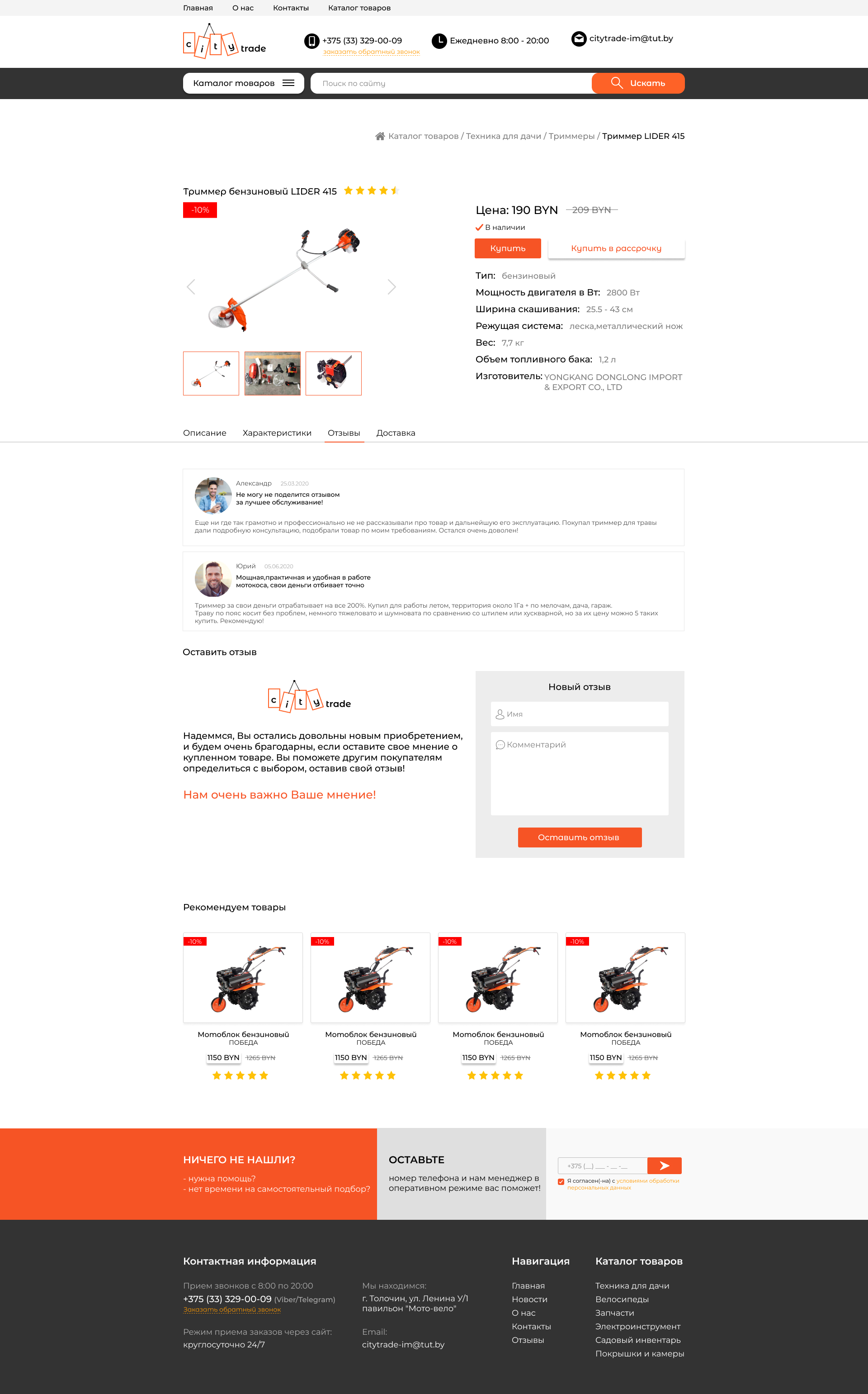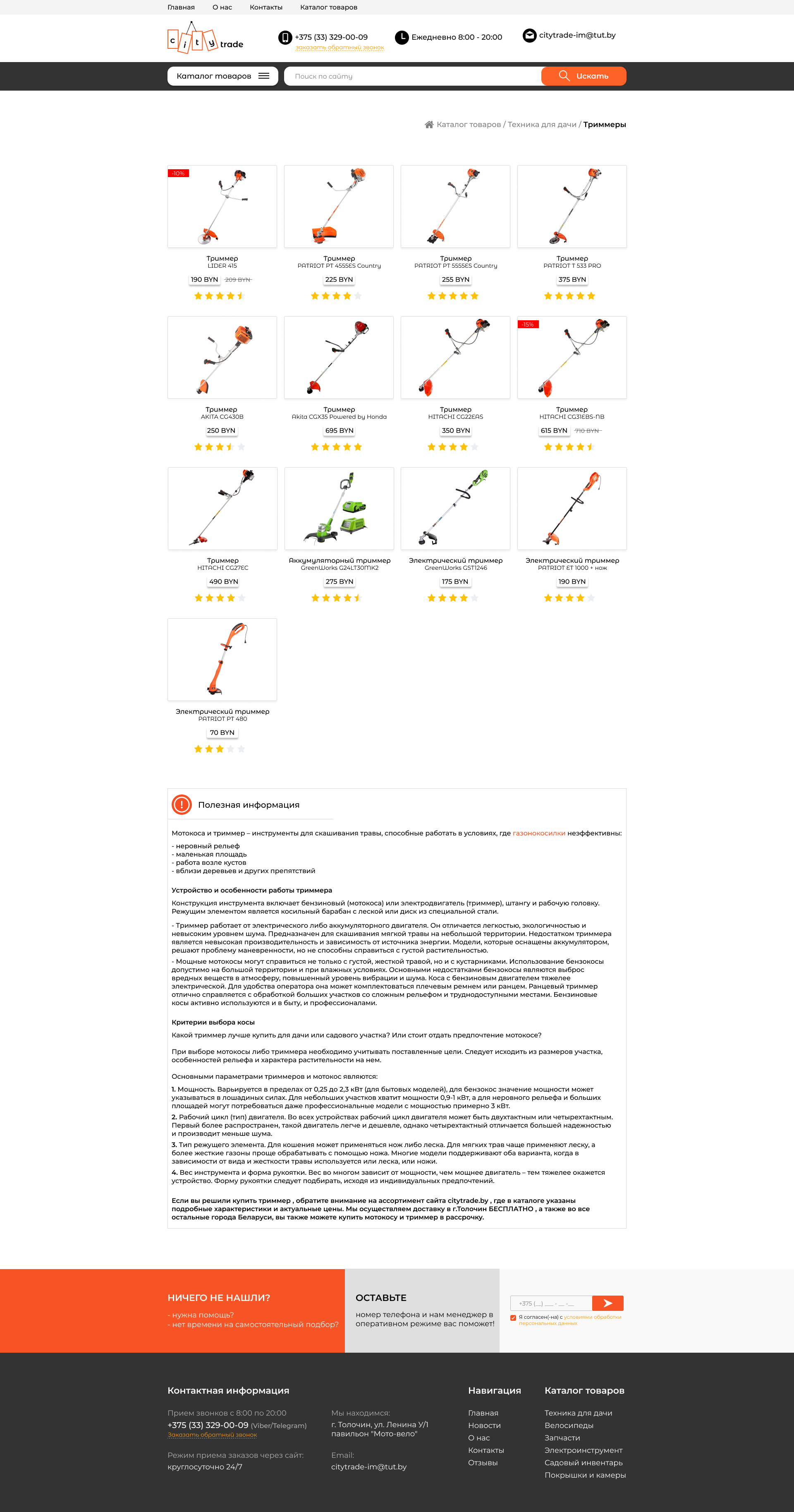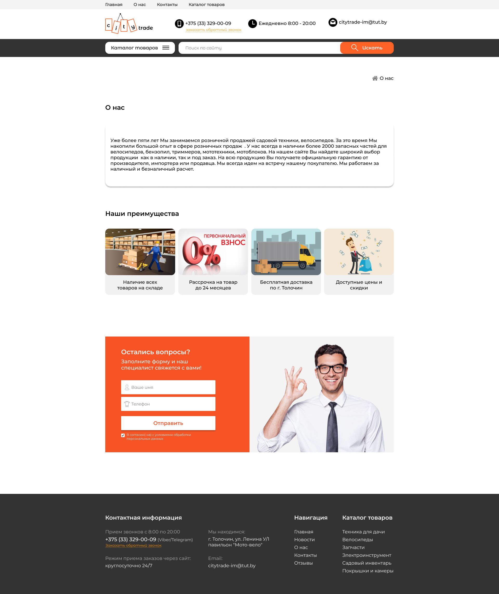 Закажите готовый продающий сайт визитка #281 в Элисте за 5-7 дня «под ключ»: свёрстан, отрисован и готов к рекламе. Тематика шаблона «Розничная продажа садовой техники, велосипедов».