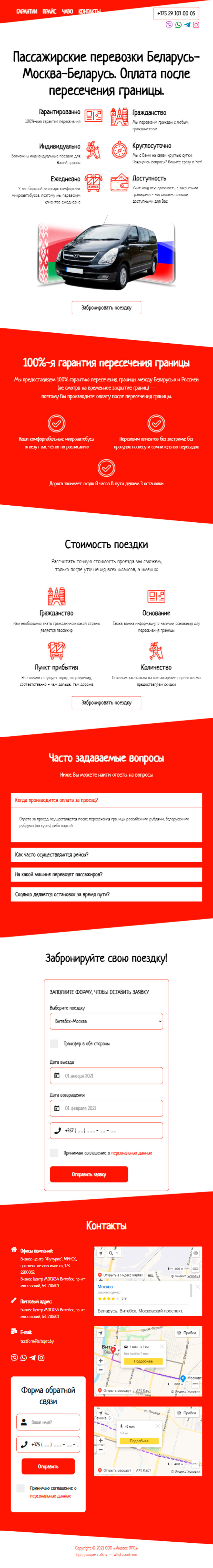 Закажите готовый продающий сайт лендинг #2528201 в Элисте за 1-3 дня «под ключ»: свёрстан, отрисован и готов к рекламе. Тематика шаблона «Пассажирские перевозки Беларусь-Москва-Беларусь».